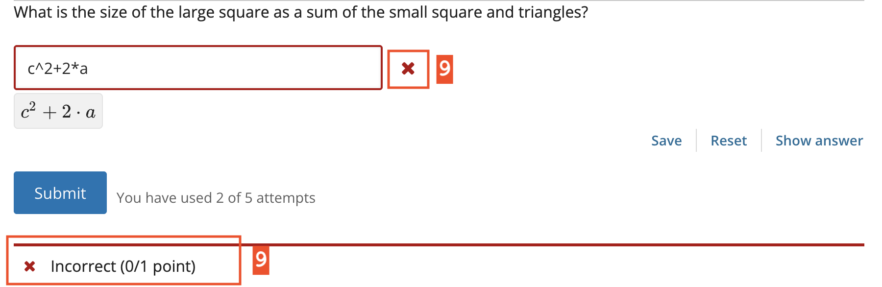 If the Reset option is available, learners can select Reset to clear any input that has not yet been submitted, and try again to answer the question.