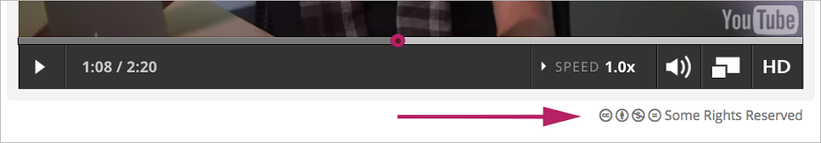 If a video has a different license than the course as a whole, you see the license at the bottom right of the video player.